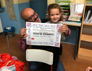 Hoy os quiero contar que fuimos de excursión al Museo del Prado. Vimos muchos cuadros.Por ejemplo:Las Meninas, La familia de Carlos IV, bodegones, el Ángel Miguel y además los mayores vimos unas pinturas un tanto extrañas que se descubrieron poque un niño estaba jugando al fútbol en una iglesia, y de repente pegó un balonazo a una pared y se descubrieron. Molaban un montón . El profe Fernando no vino porque le había tocado ir a las mesas electorales. Al principio vimos a unos chicos disfrazados de pintores y nos dijeron que se habían salido de un cuadro. Tuvimos un guía llamado Álvaro que nos lo explicó todo al detalle. Le doy las gracias a Álvaro, luego nos tuvimos que ir. Jooo, que pena, pero bueno es lo que toca . Y con esto y un bizcocho hasta mi próximo artículo.